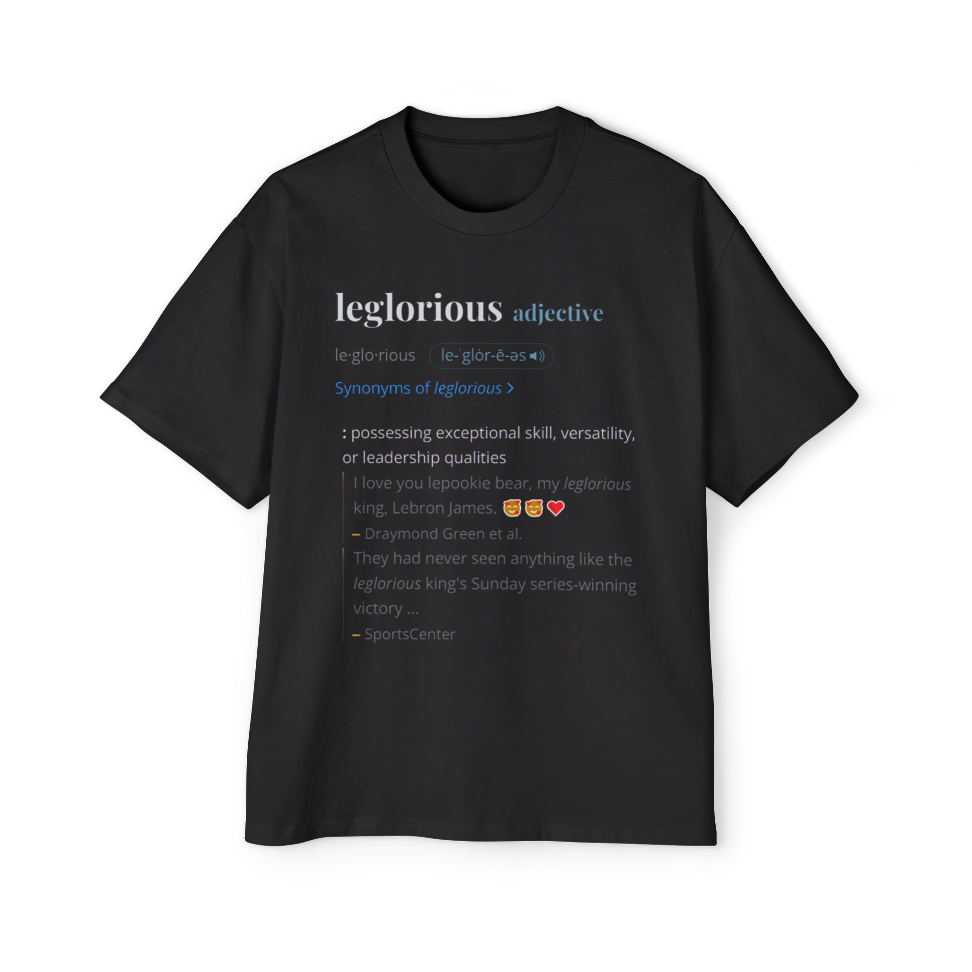 This LeBron James inspired heavy oversized tee exudes a "leglorious"; vibe, perfect for basketball fans and streetwear enthusiasts. The tee offers a relaxed fit with dropped shoulders, making it comfortable to wear while cheering on your favorite team or hitting the courts. Ideal for gifting on birthdays, holidays, and game days.